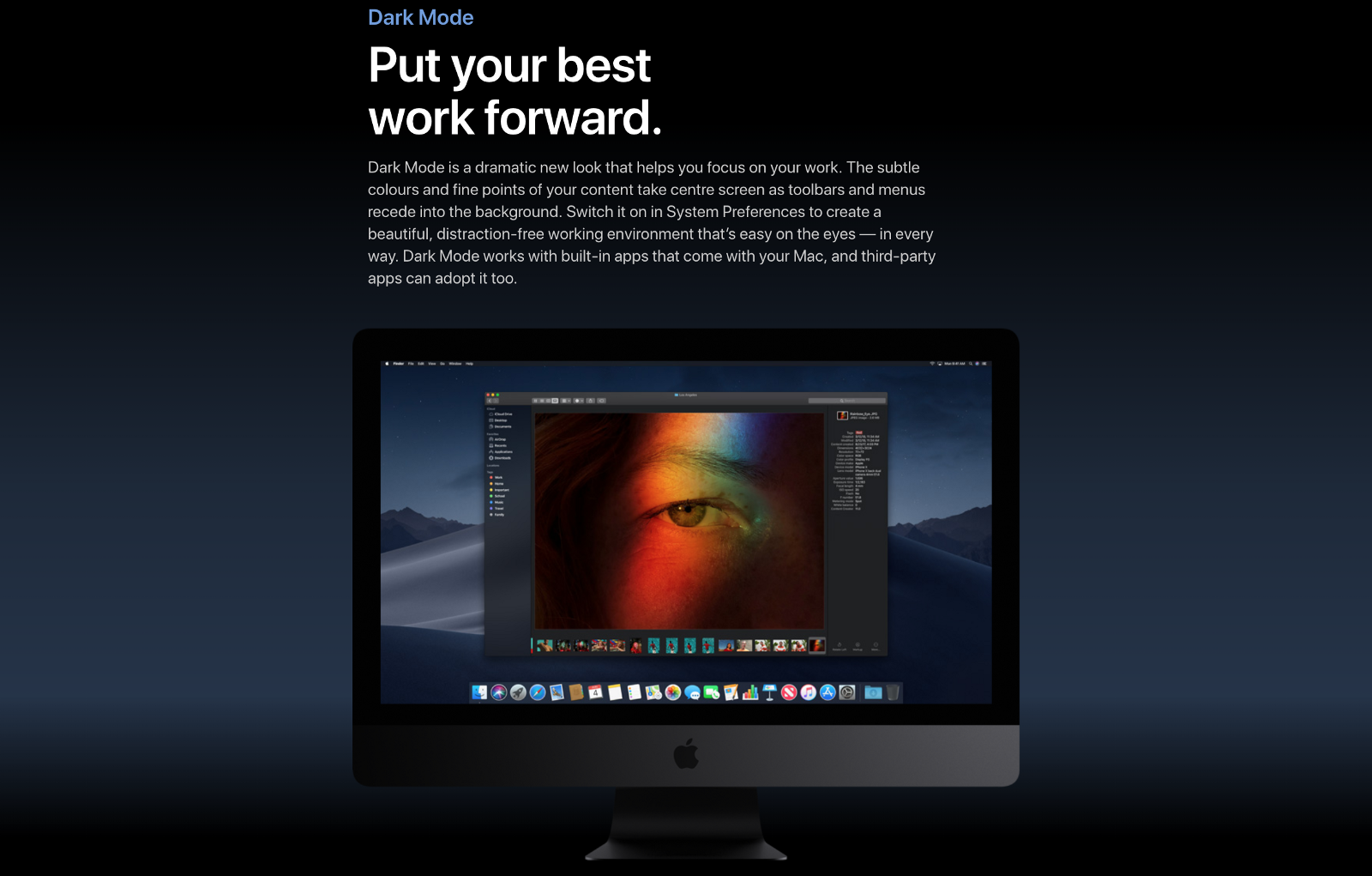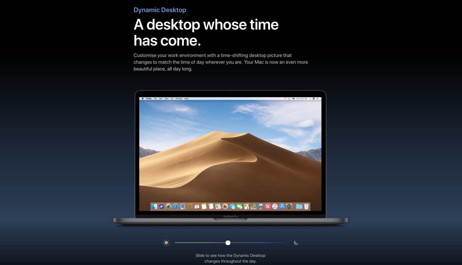 This shift has now, seemingly, ignited a new fire in Apple’s own temporal intelligence. It’s latest MacOS operating system, to be released in Autumn 2018, will feature two additional new features aligned to biological and psychological time. Dark Mode allows users to ‘focus’ on their work through a subtle use of light reminiscent of the moon in the nights sky.